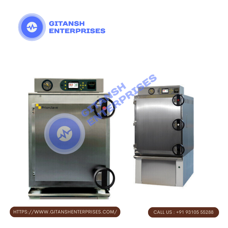 - Inner chamber volume:Â Our laboratory autoclave come in 35, 50, 75 and 100 liters’ volume. Each unit is supplied with two numbers stainless steel perforated baskets.